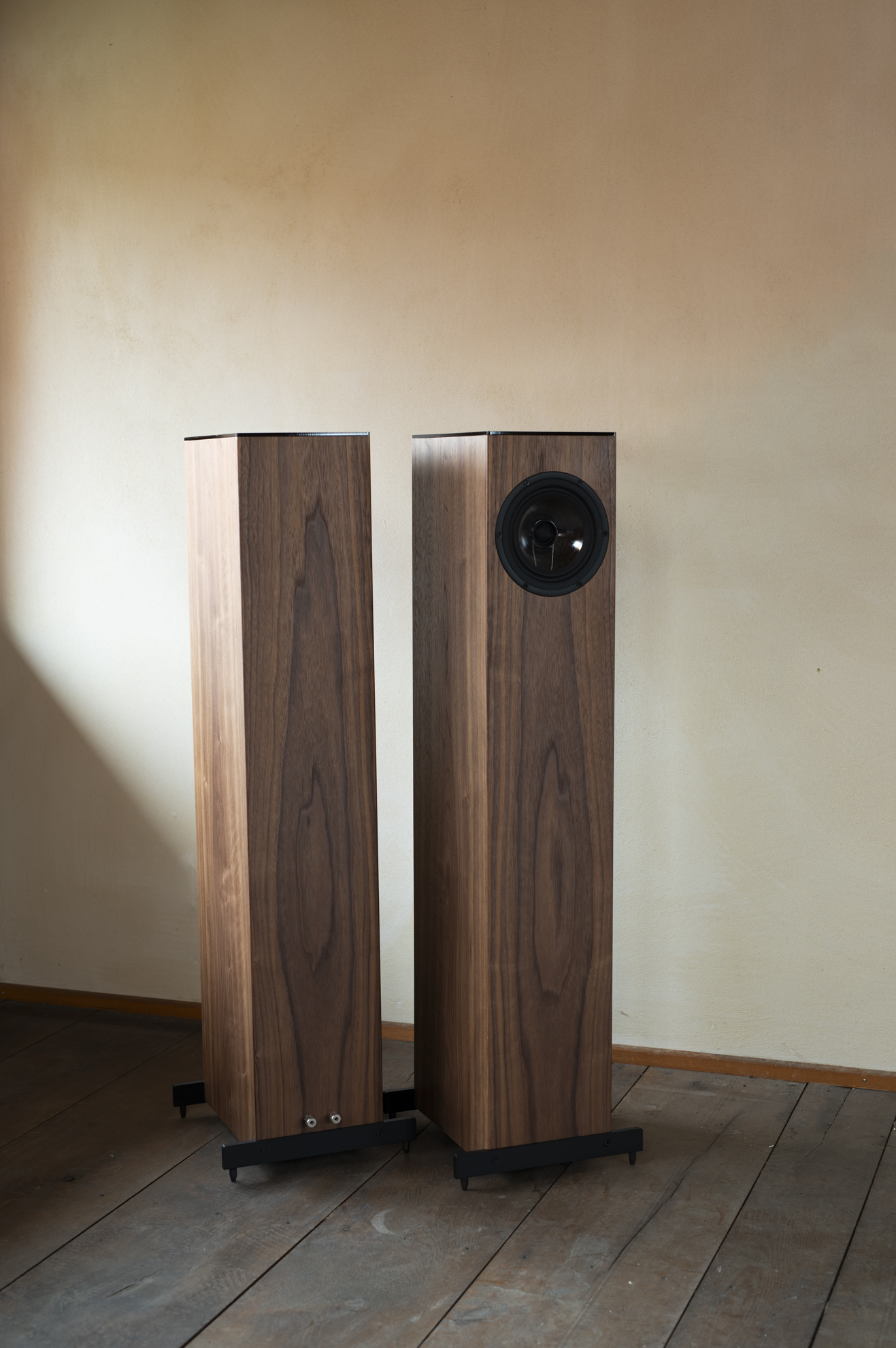 Das abgebildete Paar in schönem Nussbaum-furnier ist einzigartig, ein Unikat.