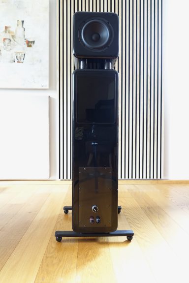 Der zeitrichtige koaxiale Punktstrahler wird durch einen rückseitigen Passiv-Bass bei seiner Eigenresonanz kontrolliert. Diese Maßnahme erhöht die Belastbarkeit und reduziert Verzerrungen. Das Ergebnis ist ein entspanntes luftig freies Klangbild mit einem tiefen Einblick ins Musikgeschehen. Sie werden Klänge entdecken, die Ihnen bislang verborgen schienen.
