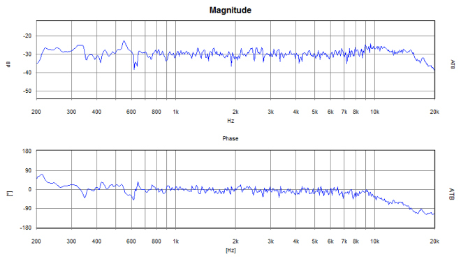 Die dritte Graphik zeigt den Frequenzgang (Magnitude) und die akustische Phase im Messbereich von 200 - 20.000 Hz.